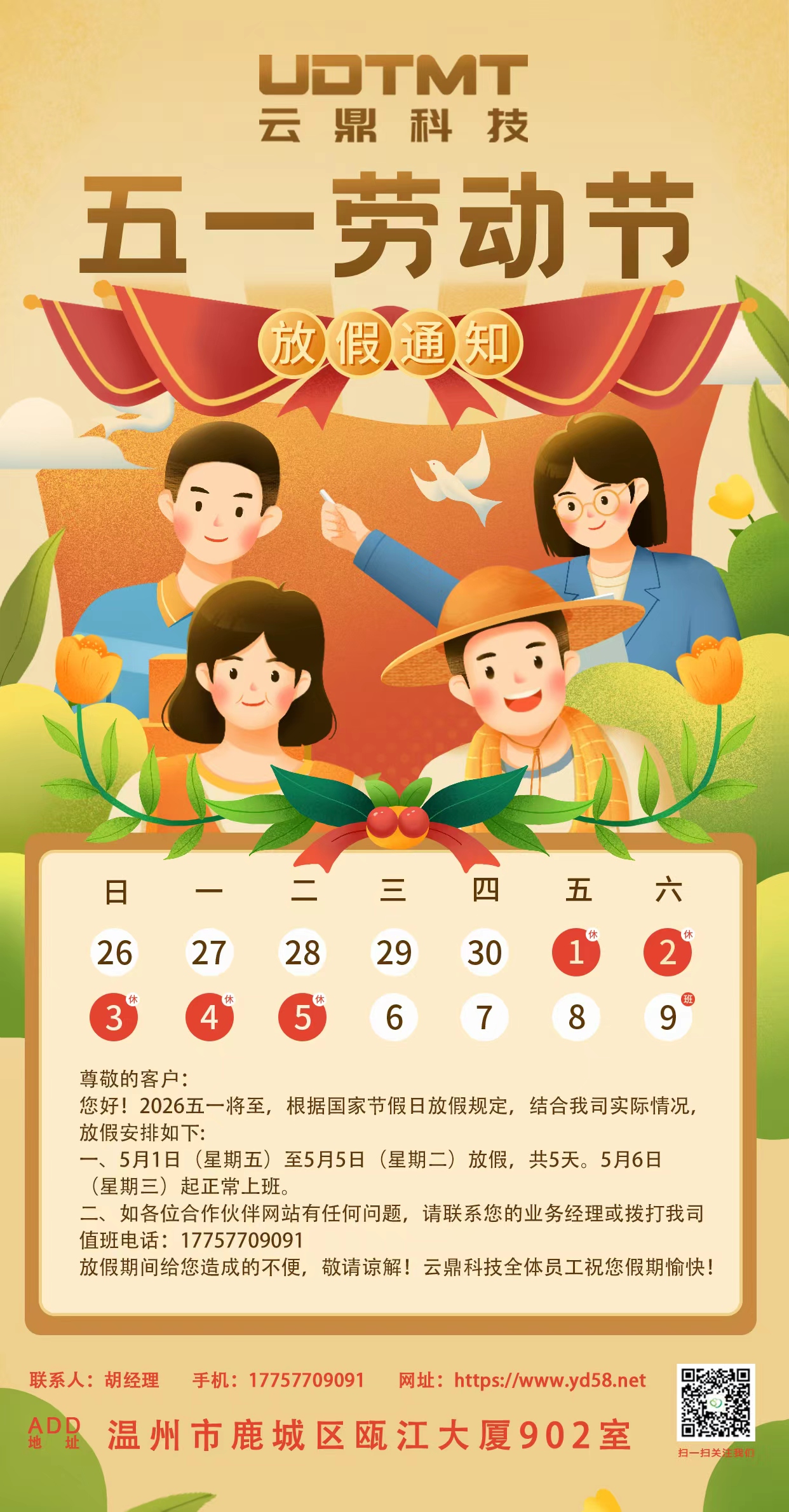 5月1日(星期五)至5月5日(星期二)放假,共5天。5月6日(星期三)起正常上班。
